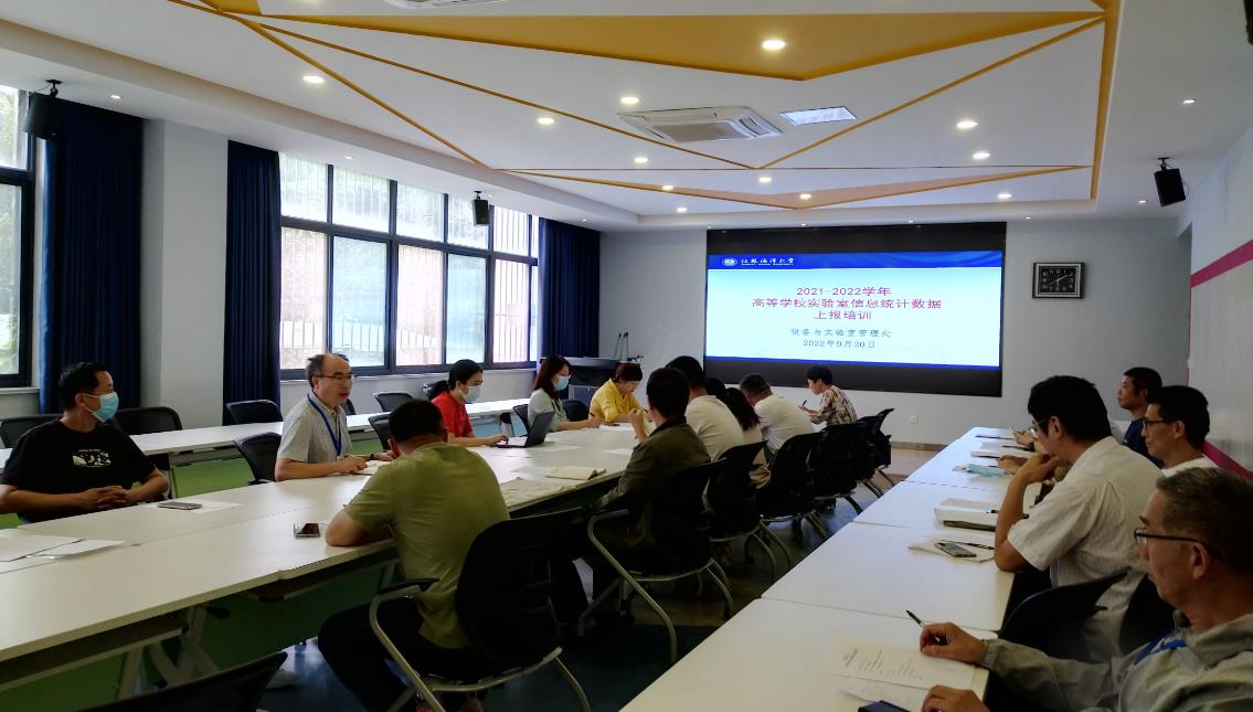 为全面了解、系统分析高等学校实验室状况,提高实验室建设整体水平,教育部在高等学校部署开展实验室信息统计工作。为做好2021—2022学年高校实验室信息统计数据报送工作,国有资产与实验室管理处于2022年9月20日上午在文渊楼115会议室组织召开实验室信息统计数据上报培训会,教务处以及各教学科研单位相关人员参加会议。