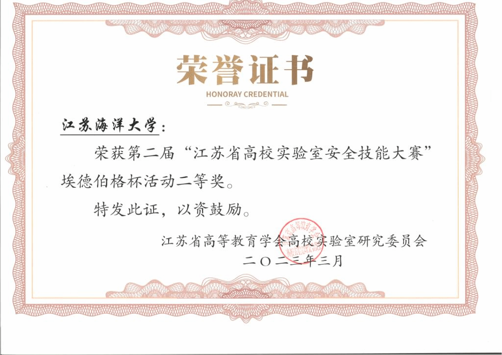 为深入学习贯彻党的二十大精神,不断提升师生危险源辨识能力、实验风险评估能力、实验现场管控能力以及事故应急逃生能力,培养高校实验室安全管理队伍,提升实验室安全管理水平, 2023年3月12日,第二届江苏省高校实验室安全技能大赛在南京农业大学举办,我校由国有资产与实验室管理处李庭古、海洋科学与水产学院祁秋霞、环境与化学工程学院毛应明等三位老师组成的代表队发挥出色,荣获大赛二等奖。